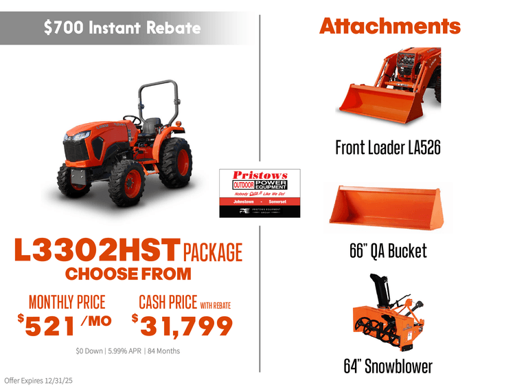0% APR available or save up to $4,500 on Standard L Tractors!